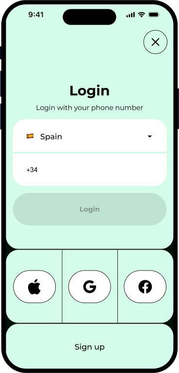 On the login screen you can authorize in any convenient way: via phone number, Apple, Google or Facebook. The interface is simple and easy to use. Create an account in a couple of seconds by clicking “Sign up”!