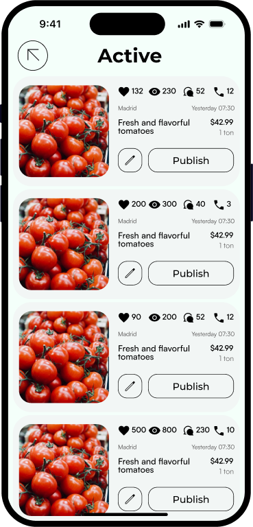 Our goal is to develop a mobile application that will simplify agro-trading processes, making them accessible and convenient for all market participants. We aimed to create a platform that unites sellers and buyers of agricultural products, allowing them to interact effectively, conclude transactions and receive up-to-date information on goods and prices.