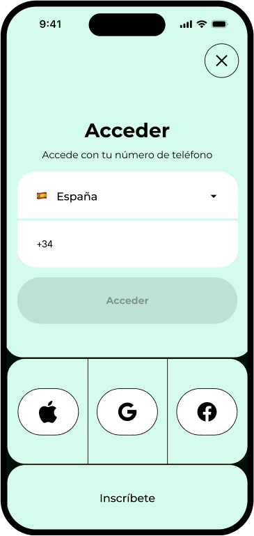 En la pantalla de inicio de sesión puedes autorizar de cualquier manera conveniente: a través del número de teléfono, Apple, Google o Facebook. La interfaz es sencilla y fácil de usar. ¡Crea una cuenta en un par de segundos haciendo clic en “Regístrate” !